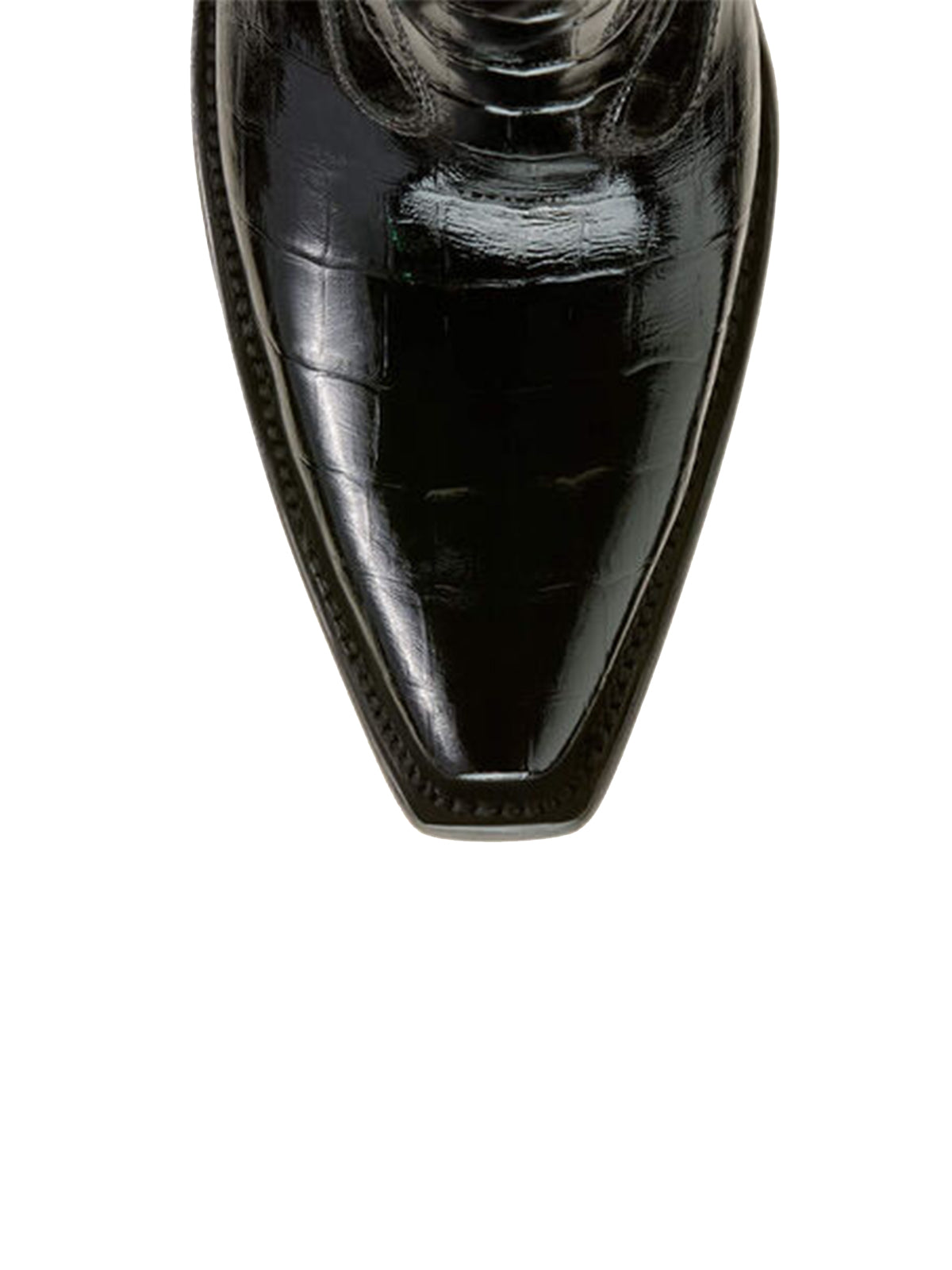 These boots feature a rich stone-print texture and a defined snip-toe shape that brings a polished western edge. The full-zip closure ensures easy entry and a secure fit, while the compact silhouette offers versatile styling for both casual and elevated looks.