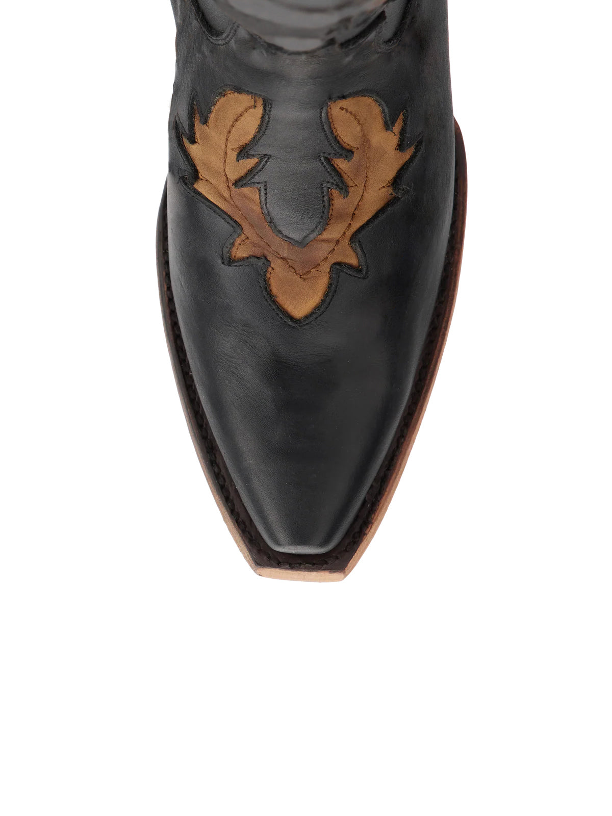 Fierce meets feminine — these boots are a bold blend of intricate embroidery, inlay detailing, and romantic back lace-up design. The rich hue commands attention, while the elegant craftsmanship whispers timeless Western soul. Made for leading, not following — every step a story.