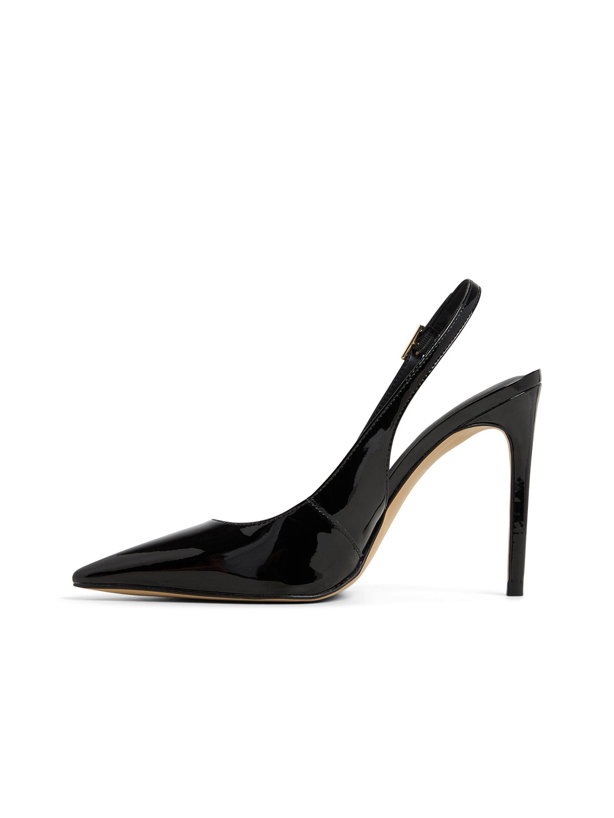 Crafted in glossy patent leather, these pointed-toe slingback heels feature a classic buckle detail that adds timeless polish. The sleek silhouette elongates the leg, making them a refined choice for workdays, evenings, or any look that calls for understated elegance.