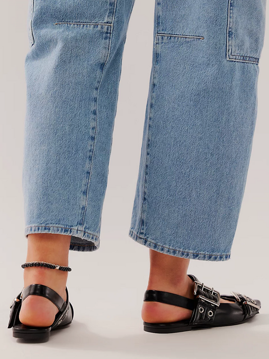 Light Beige Grommet Eyelet Buckle Strappy Pointy Flats Mary Janes Slingbacks