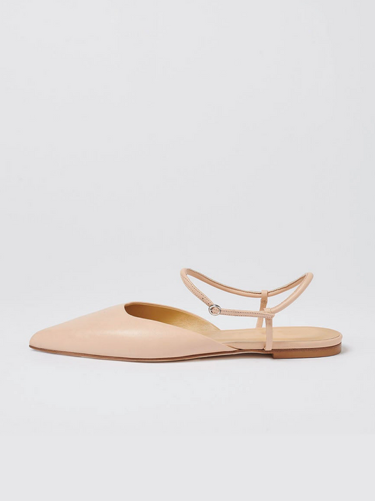 Light Peach Pointed-Toe Vegan Leather Flats With Ankle Strap