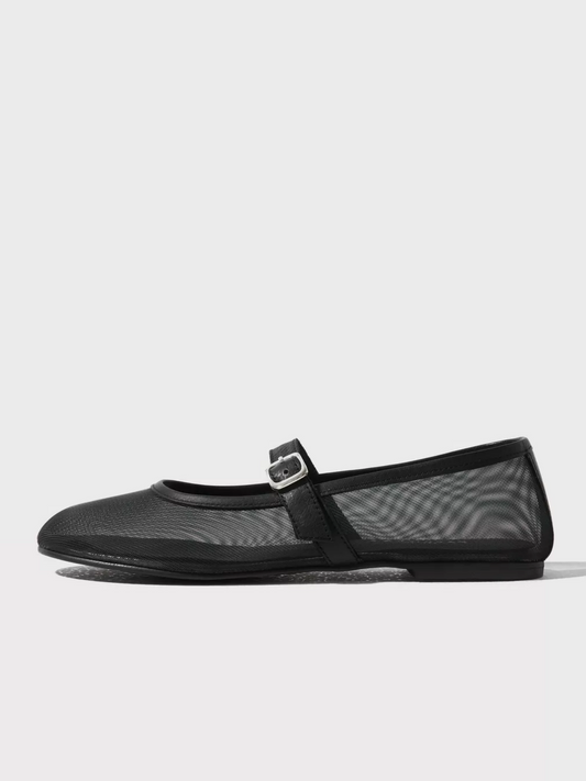 Black Mesh Round-Toe Ballerinas Flats Buckled Mary Janes