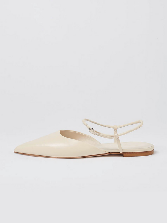 Cream Pointed-Toe Vegan Leather Flats With Ankle Strap