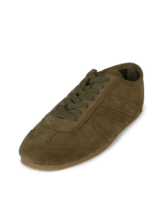 Olive Green Faux Suede Round-Toe Lace-Up Classic Sneakers Flats
