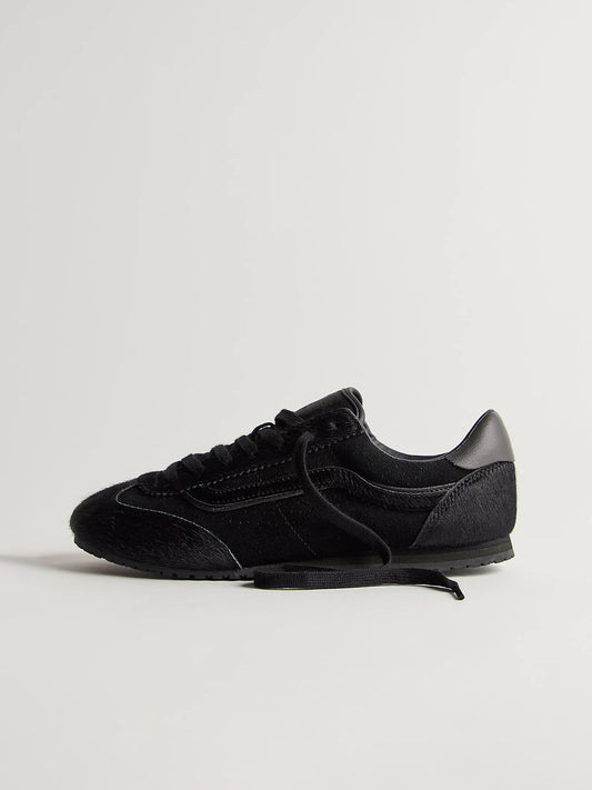 Black Faux Suede Round-Toe Lace-Up Classic Sneakers Flats