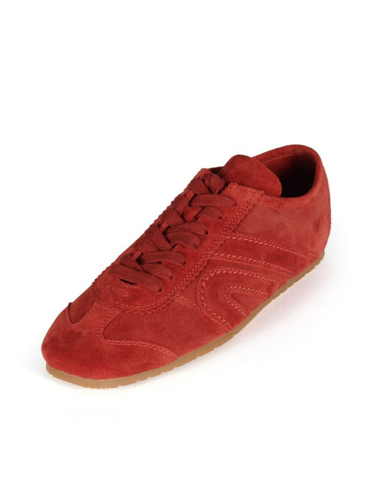 Brick Red Faux Suede Round-Toe Lace-Up Classic Sneakers Flats