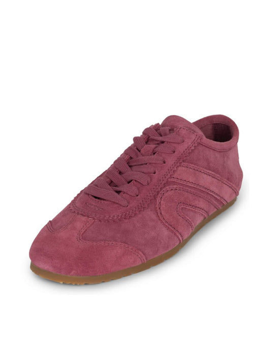Raspberry Red Faux Suede Round-Toe Lace-Up Classic Sneakers Flats