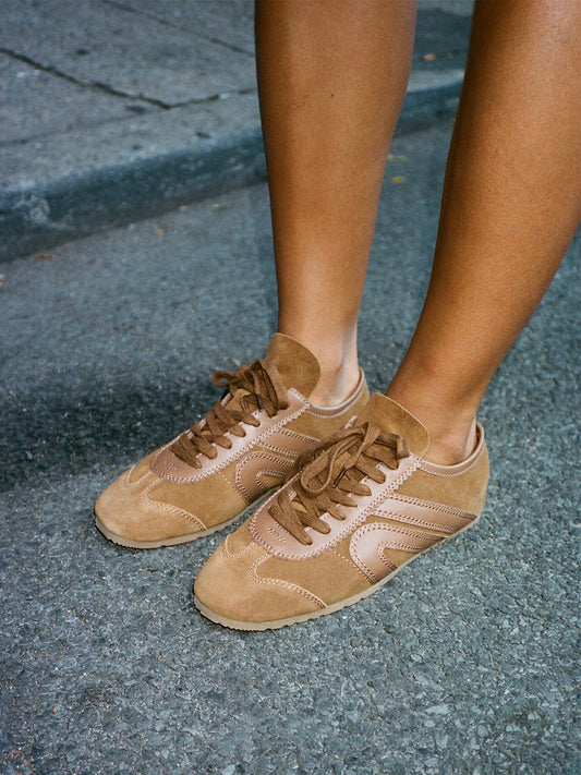 Mocha Faux Suede Round-Toe Lace-Up Classic Sneakers Flats