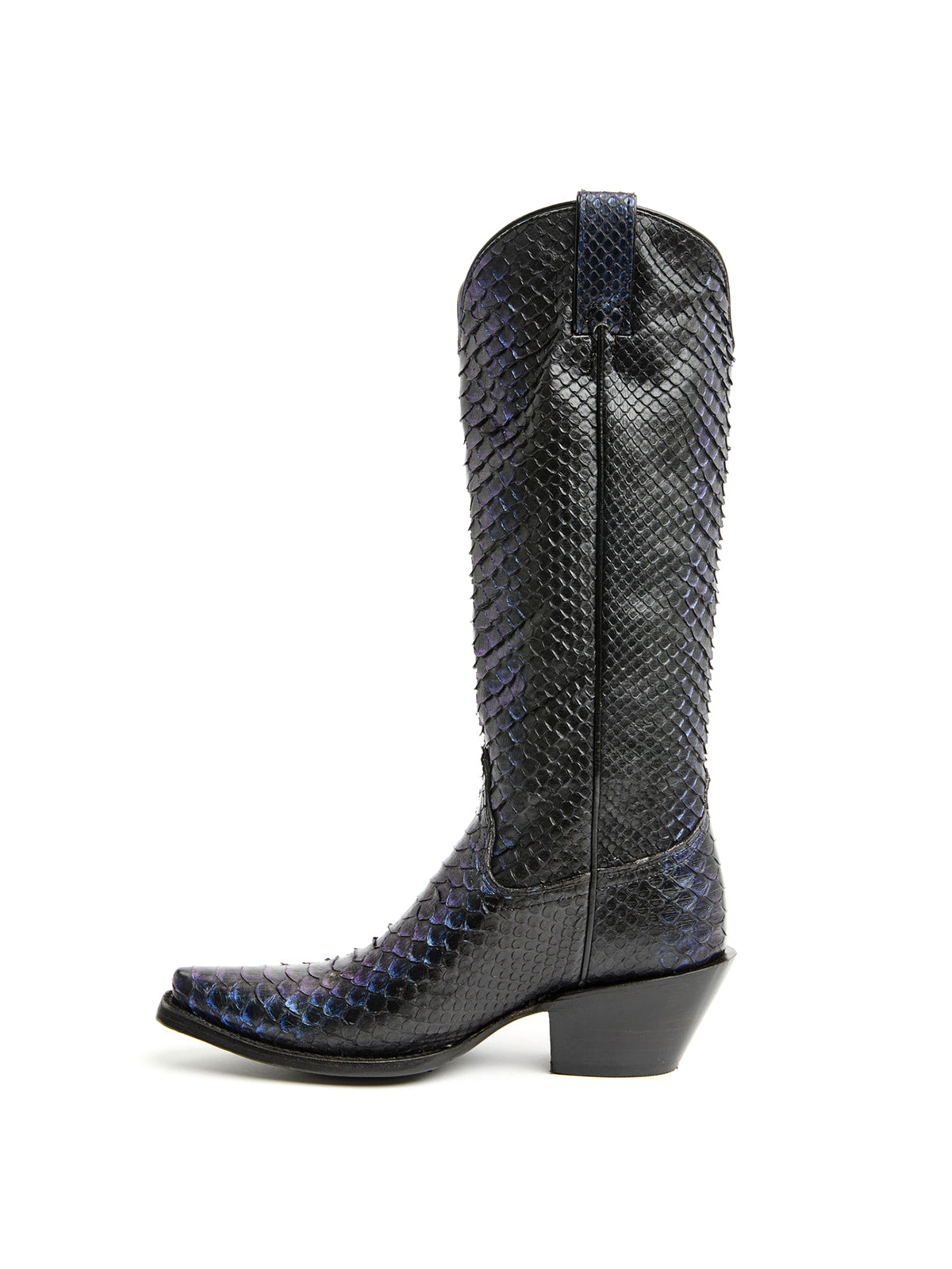 Bold and edgy, these boots feature a sharp snip-toe silhouette and a sleek wide-calf fit. The textured snakeskin pattern adds attitude and visual interest, while the streamlined design ensures a modern, leg-lengthening effect—perfect for Western-inspired outfits, festivals, or standout everyday looks.