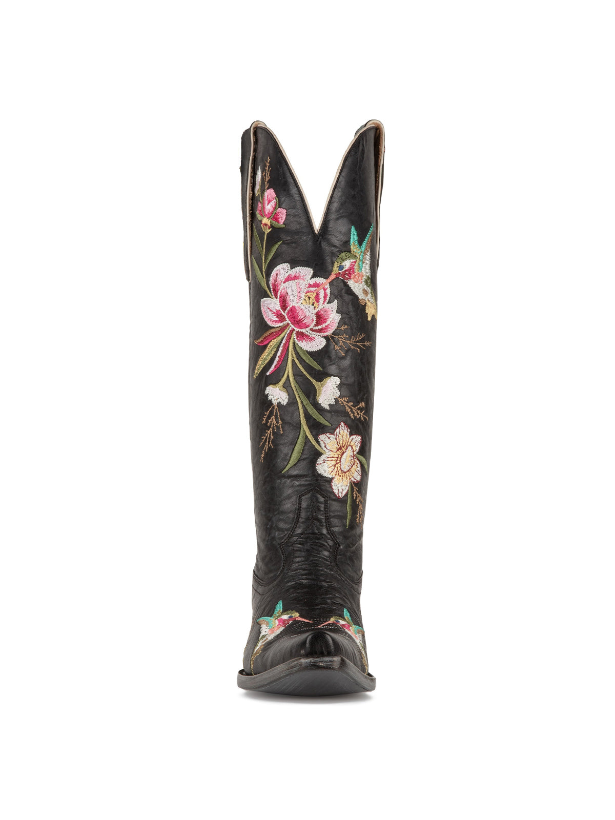 Striking and artistic, these boots feature a sharp snip-toe silhouette brought to life with vivid floral and bird embroidery. The colorful stitching stands out beautifully against the deep base, creating a bold yet elegant Western statement. Designed with a wide-calf fit for added comfort, they’re perfect for festivals, Western-inspired outfits, or standout everyday styling.