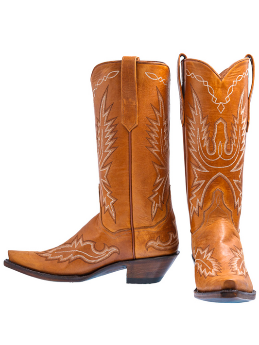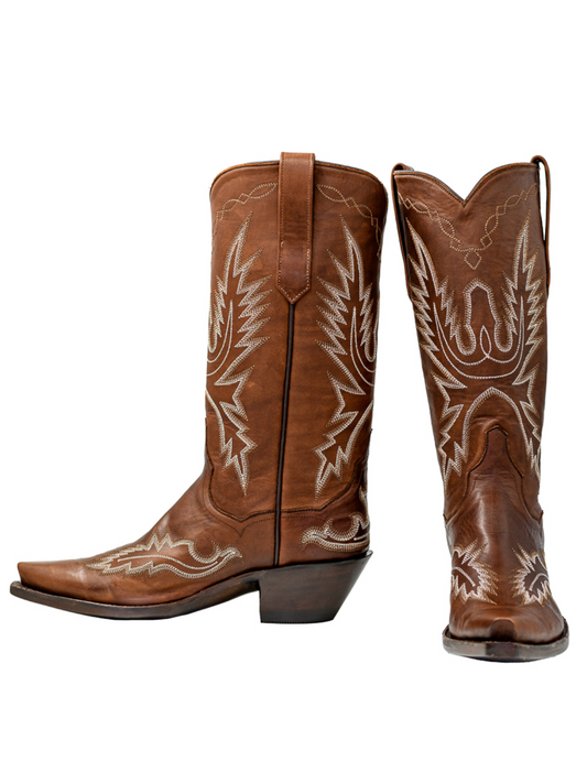 Snip-Toe Classic Embroidery Wide Mid Calf Tall Cowgirl Boots - Cognac