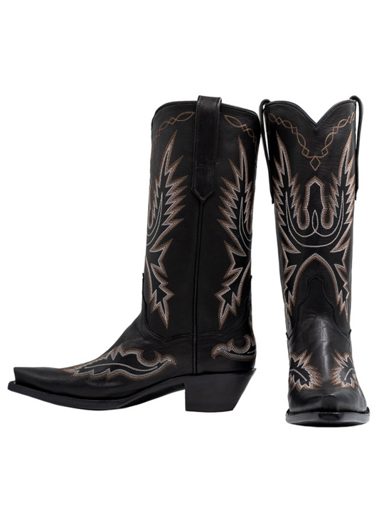 Classic Embroidery Snip-Toe Wide Mid Calf Tall Cowgirl Boots - Black