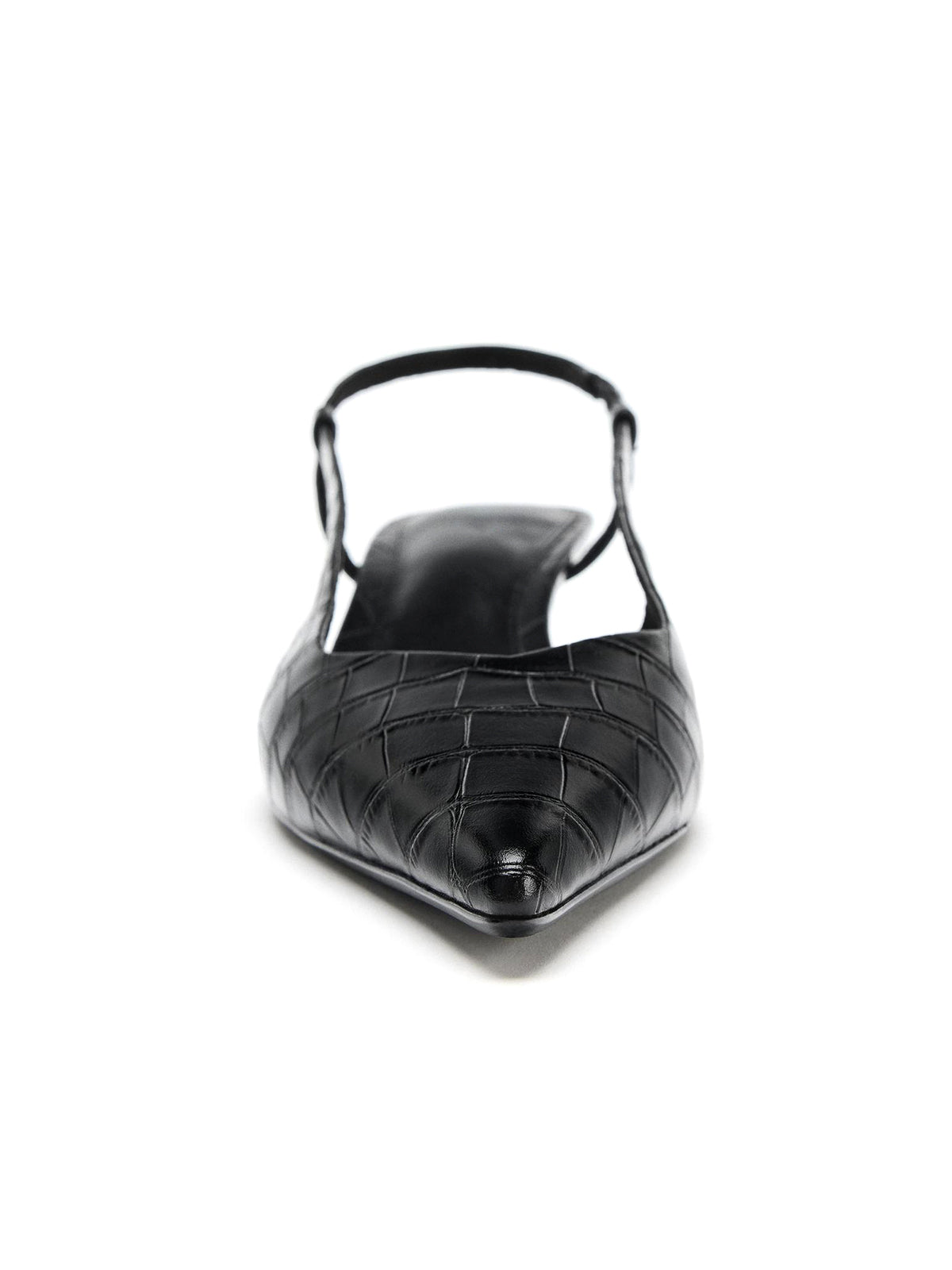 Black Bamboo Pattern Pointed-Toe Slingback Kitten Heels