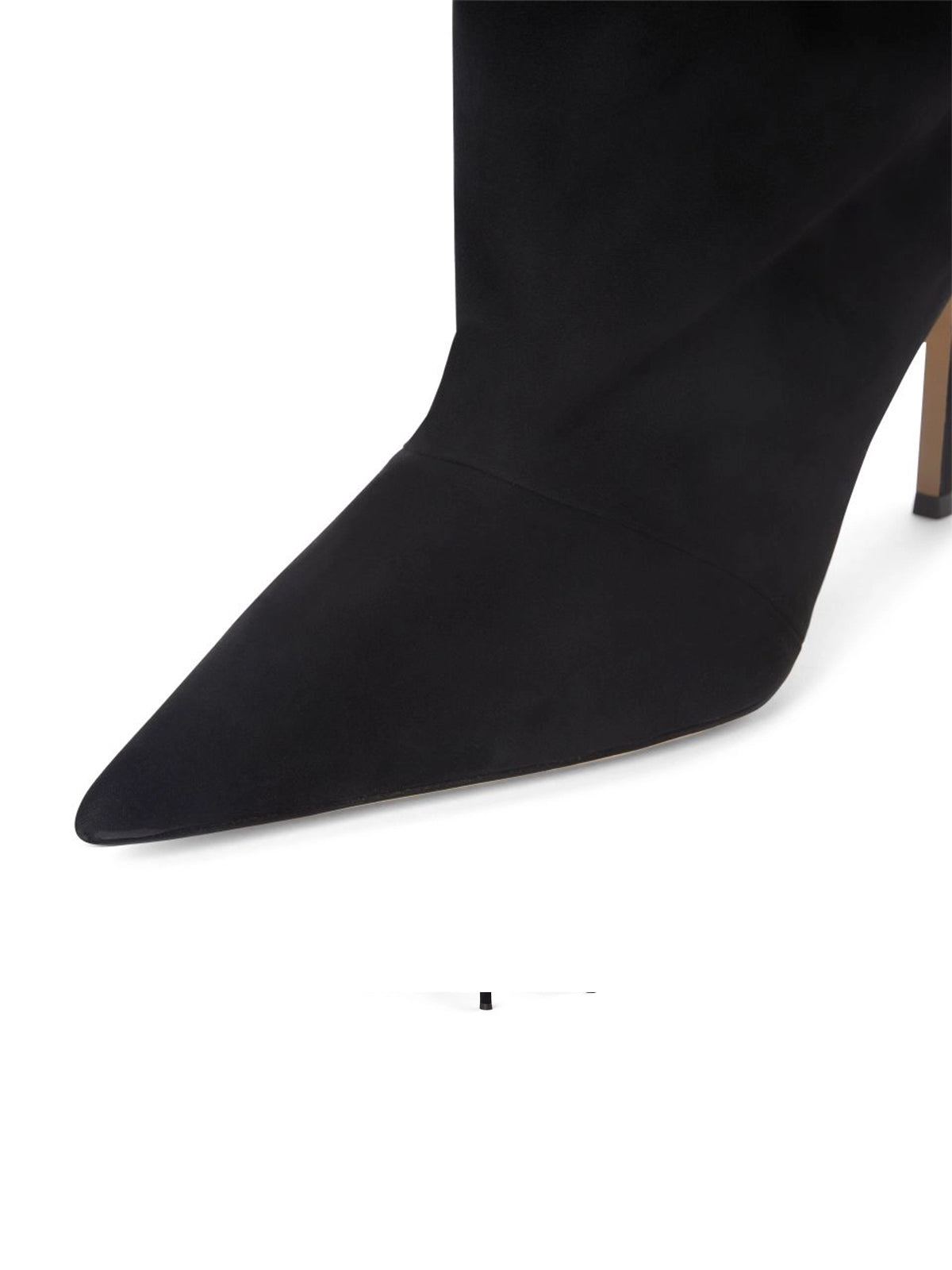 Black Faux Suede Pointed-Toe Sleek Wide Calf Knee High Stiletto Boots