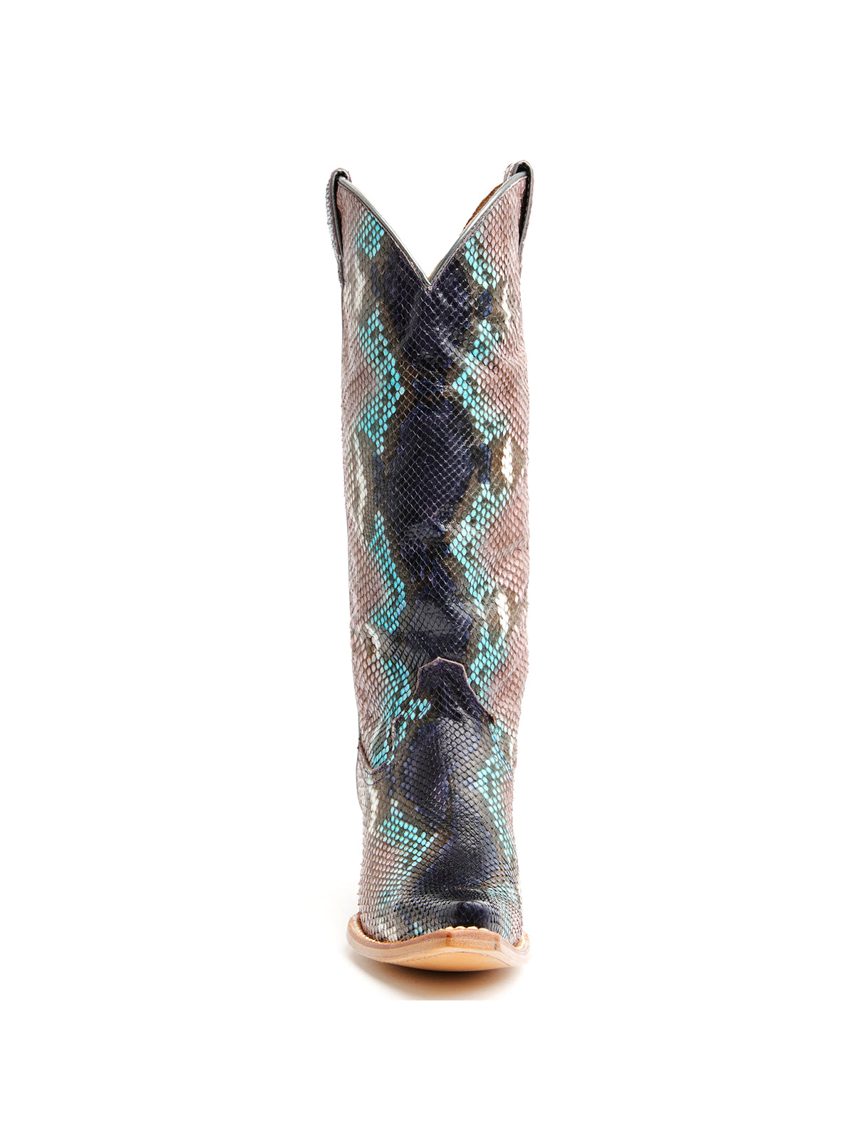 Bold and edgy, these boots feature a sharp snip-toe silhouette and a sleek wide-calf fit. The textured snakeskin pattern adds attitude and visual interest, while the streamlined design ensures a modern, leg-lengthening effect—perfect for Western-inspired outfits, festivals, or standout everyday looks.