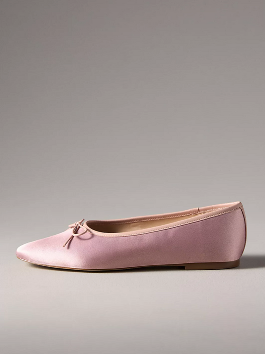 Blush Pink Cloth Square-Toe Bow Mary Janes Ballet Flats