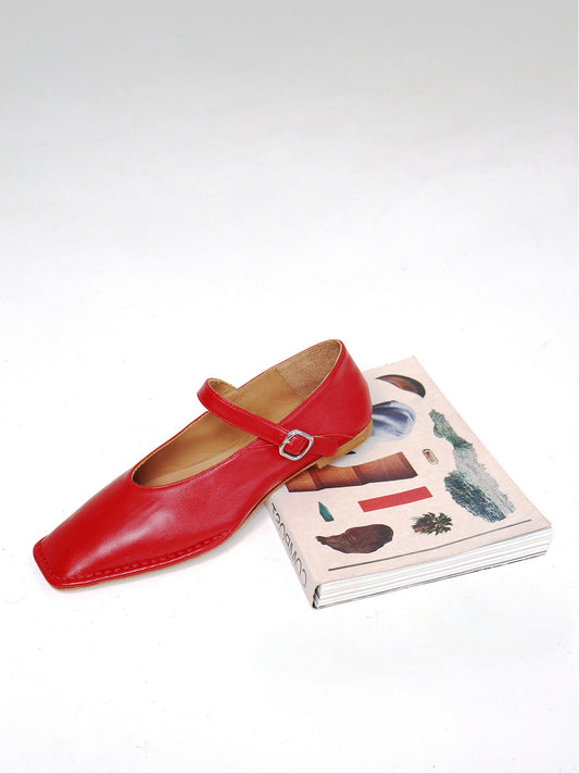 Red Square-Toe Buckle Mary Jane Ballet Flats
