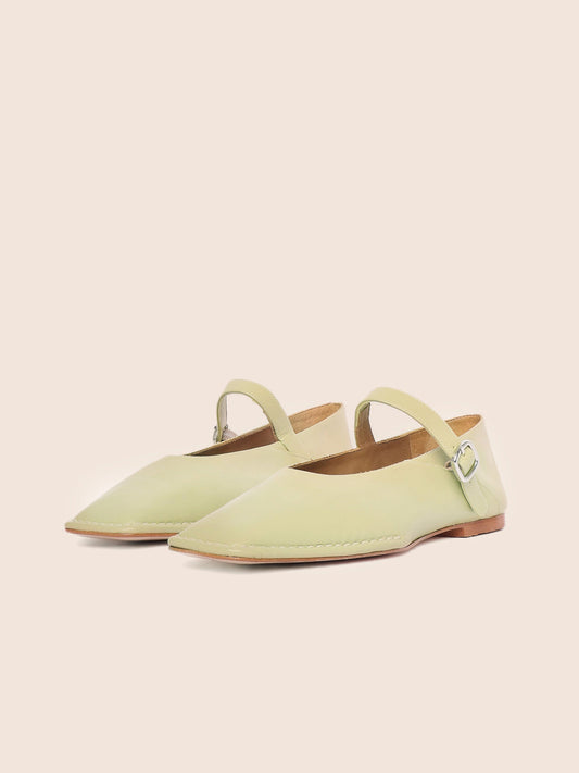 Cream Square-Toe Buckle Mary Jane Ballet Flats