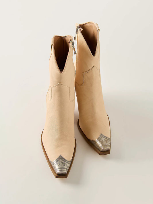 Metal Snip-Toe Full-Zip Classic Cowgirl Ankle Boots - Peach