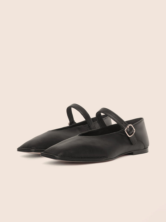 Black Square-Toe Buckle Mary Jane Ballet Flats