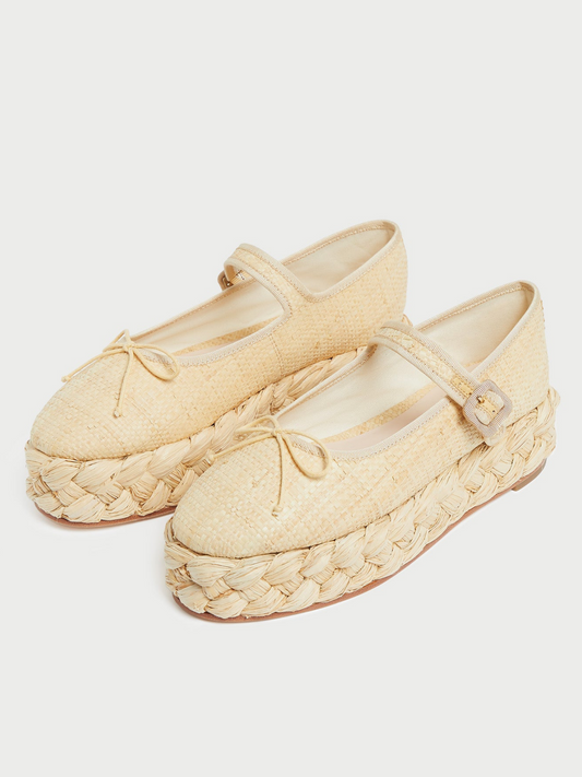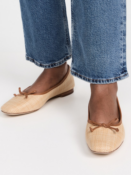 Beechwood Woven Raffia Bow Square Toe Ballet Flats