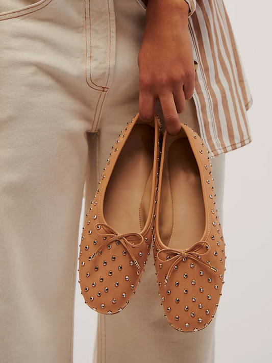 Beechwood Brown Sparkle Rhinestone Fabric Bow Ballet Flats With Slightly Square-Toe