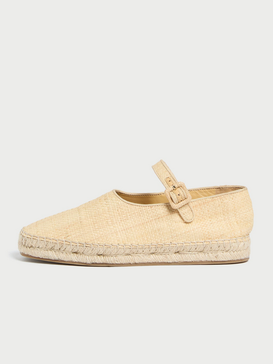 Beige Almond-Toe Adjustable Bridge Strap Espadrille Mary Janes Flats