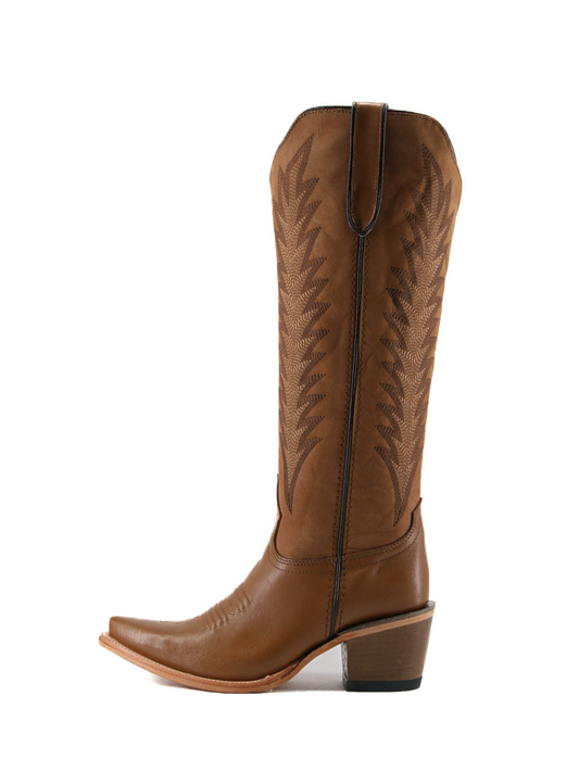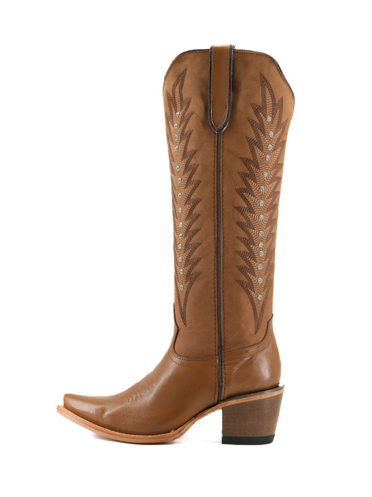 Wheat Snip-Toe Half-Zip Classic Embroidery Knee High Tall Cowgirl Boots