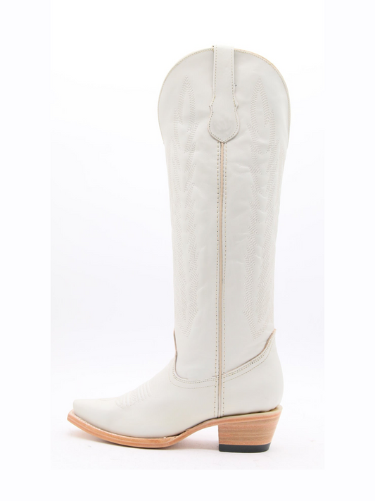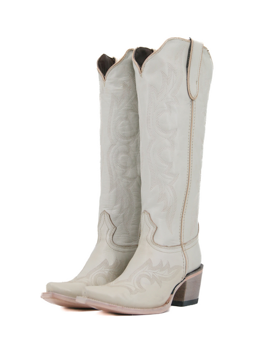 Ivory Snip-Toe Half-Zip Classic Embroidery Knee High Tall Cowgirl Boots