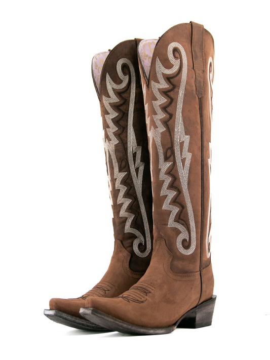 Brown Snip-Toe Stitch Wide Calf Knee High Cowgirl Boots