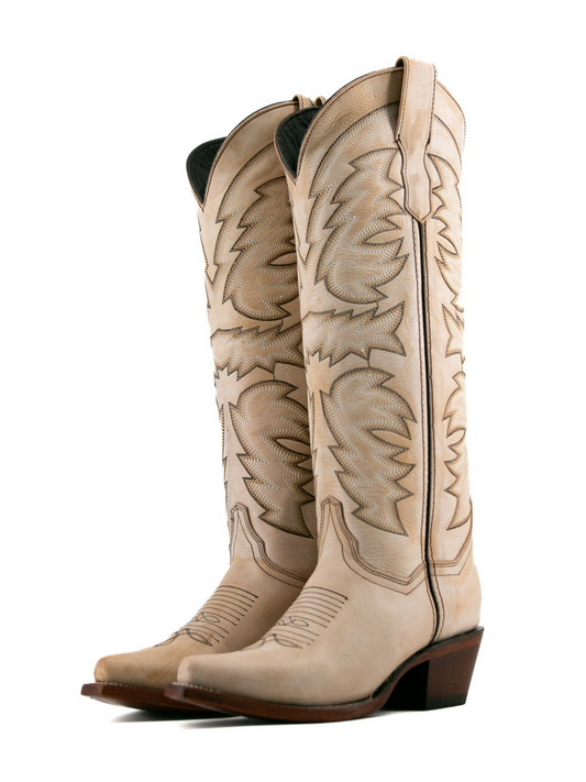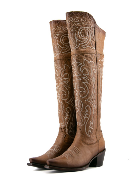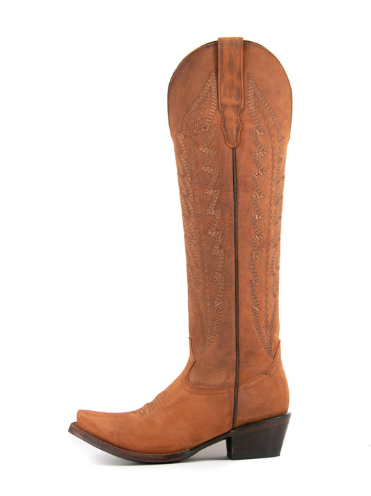 Wheat Snip-Toe Embroidery Wide Calf Knee High Tall Cowgirl Boots
