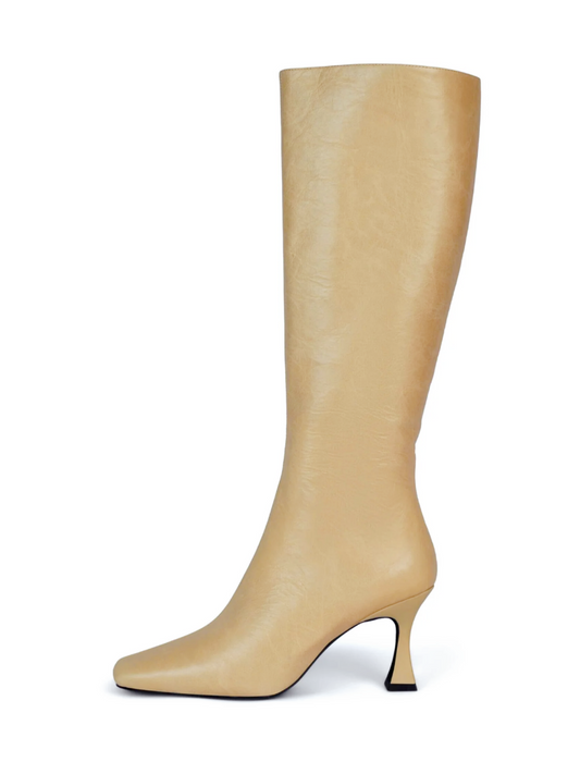 Square-Toe Knee High Full-Zip Stiletto Boots - Light Yellow