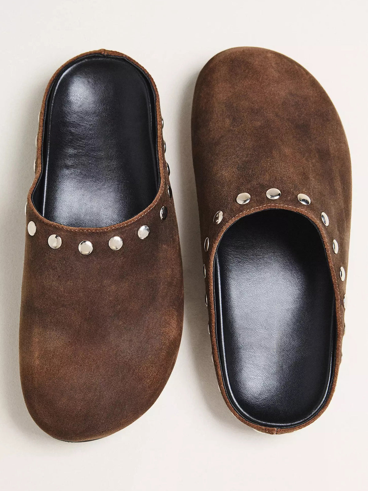 Effortlessly cool, these flats feature a modern square-toe silhouette crafted in soft faux suede. Studded accents add a touch of edgy detail, while the backless slip-on design ensures easy, laid-back wear. Comfortable yet stylish, they’re perfect for casual outings, everyday styling, or relaxed chic looks.