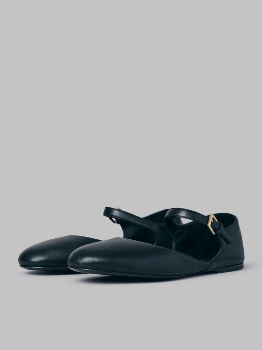 Black Buckled Ankle Strap Round-Toe Flat Shoes