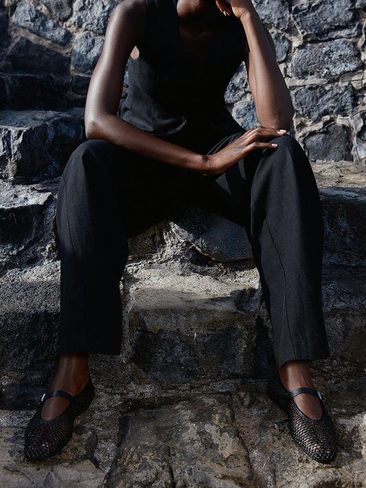 Black Braided Boho Ballet Flats Round-Toe Mary Janes With Buckled Strap