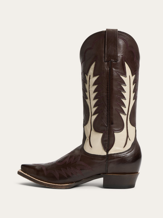 Brown Snip-Toe Arrows Inlay Wide Mid Calf Tall Cowgirl Boots