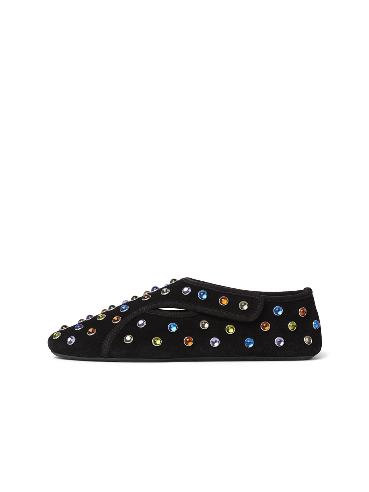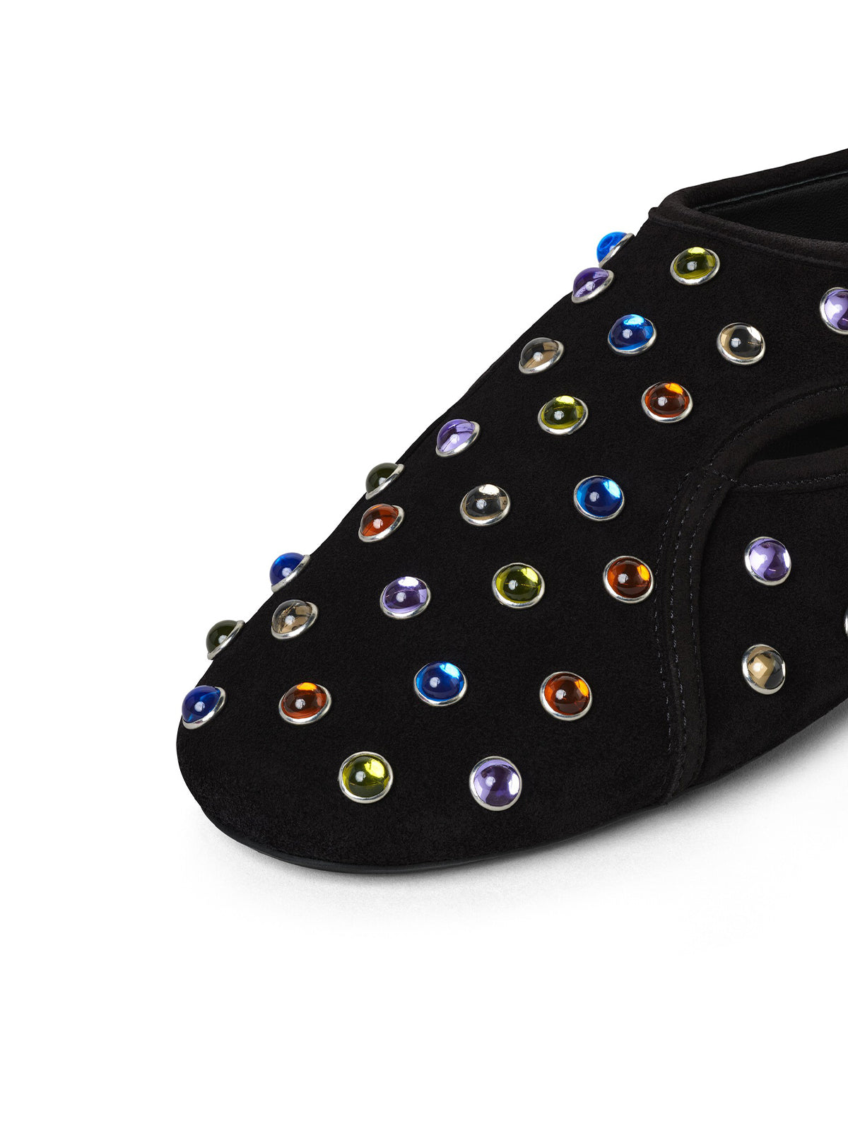 Black Faux Suede Round-Toe Ballet Flats With Colorful Beads