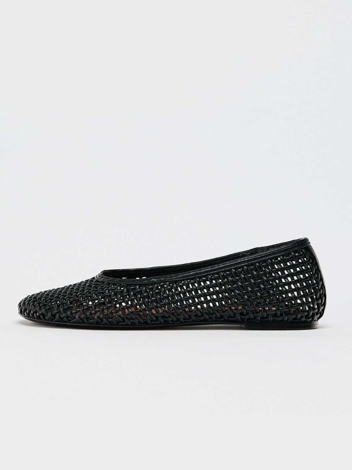 Black Woven Round-Toe Slip-On Ballet Flats