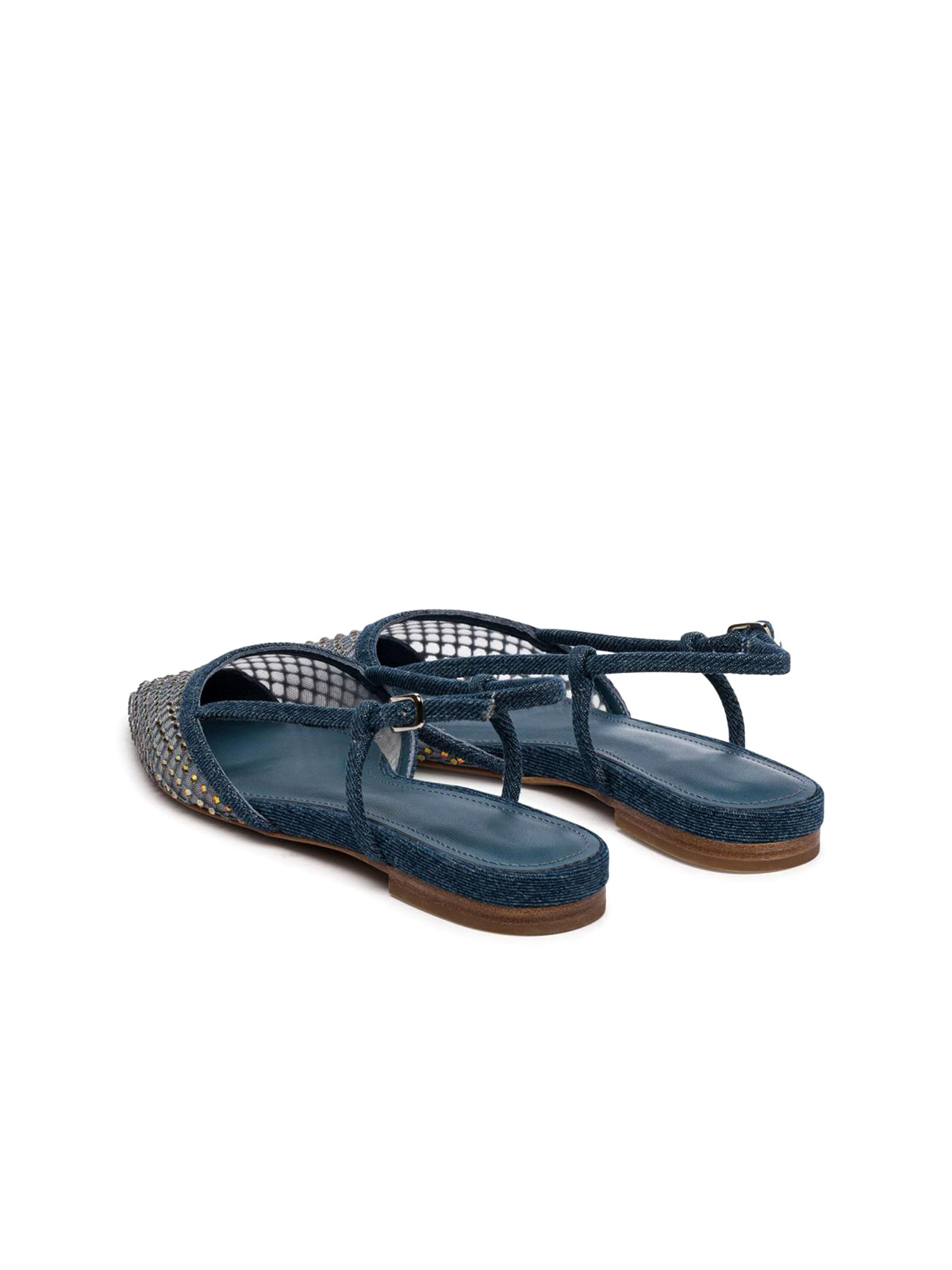 Blue Mesh Pointed-Toe Full Rhinestones Slingback Flats