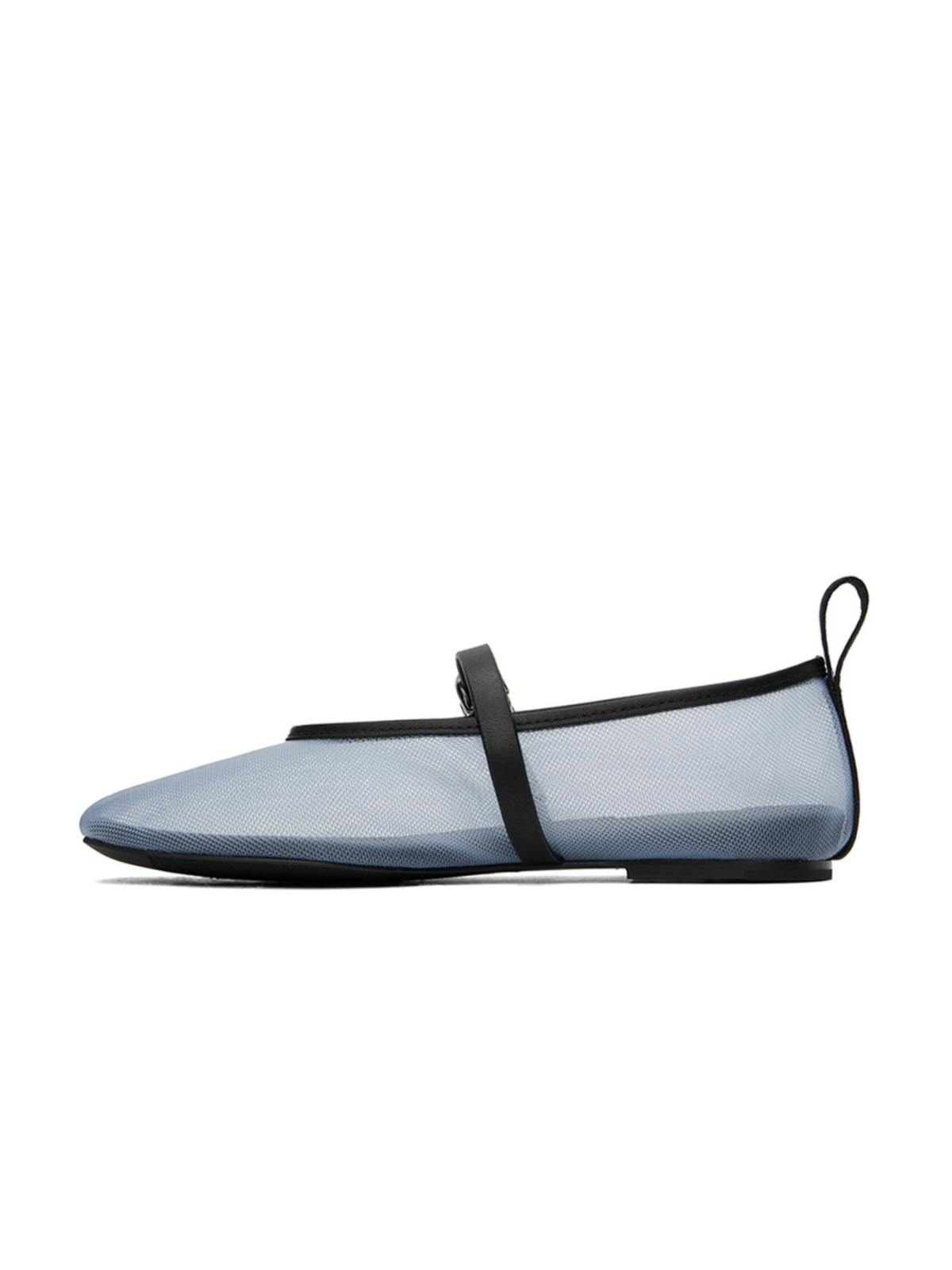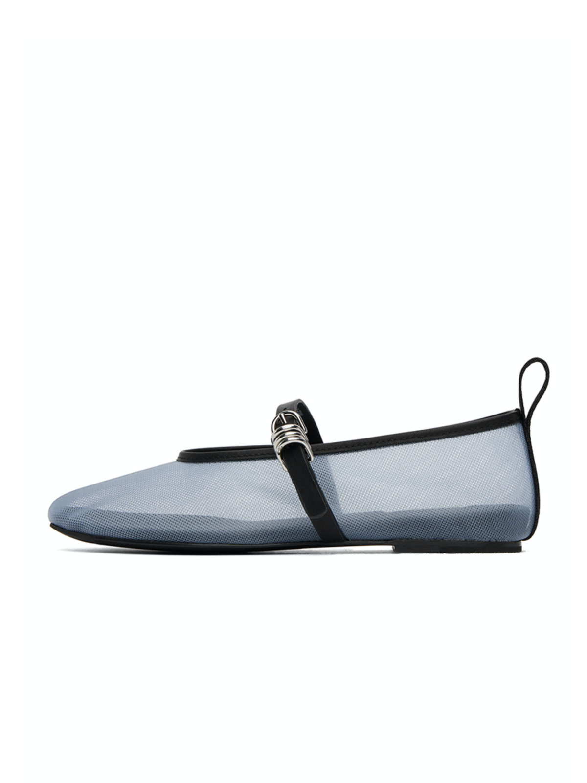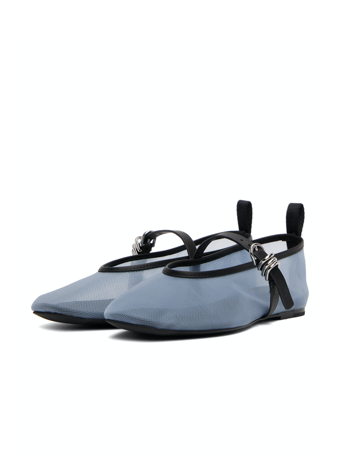 Blue Sheer Mesh Mary Janes Ballet Flats With Buckle & Rings