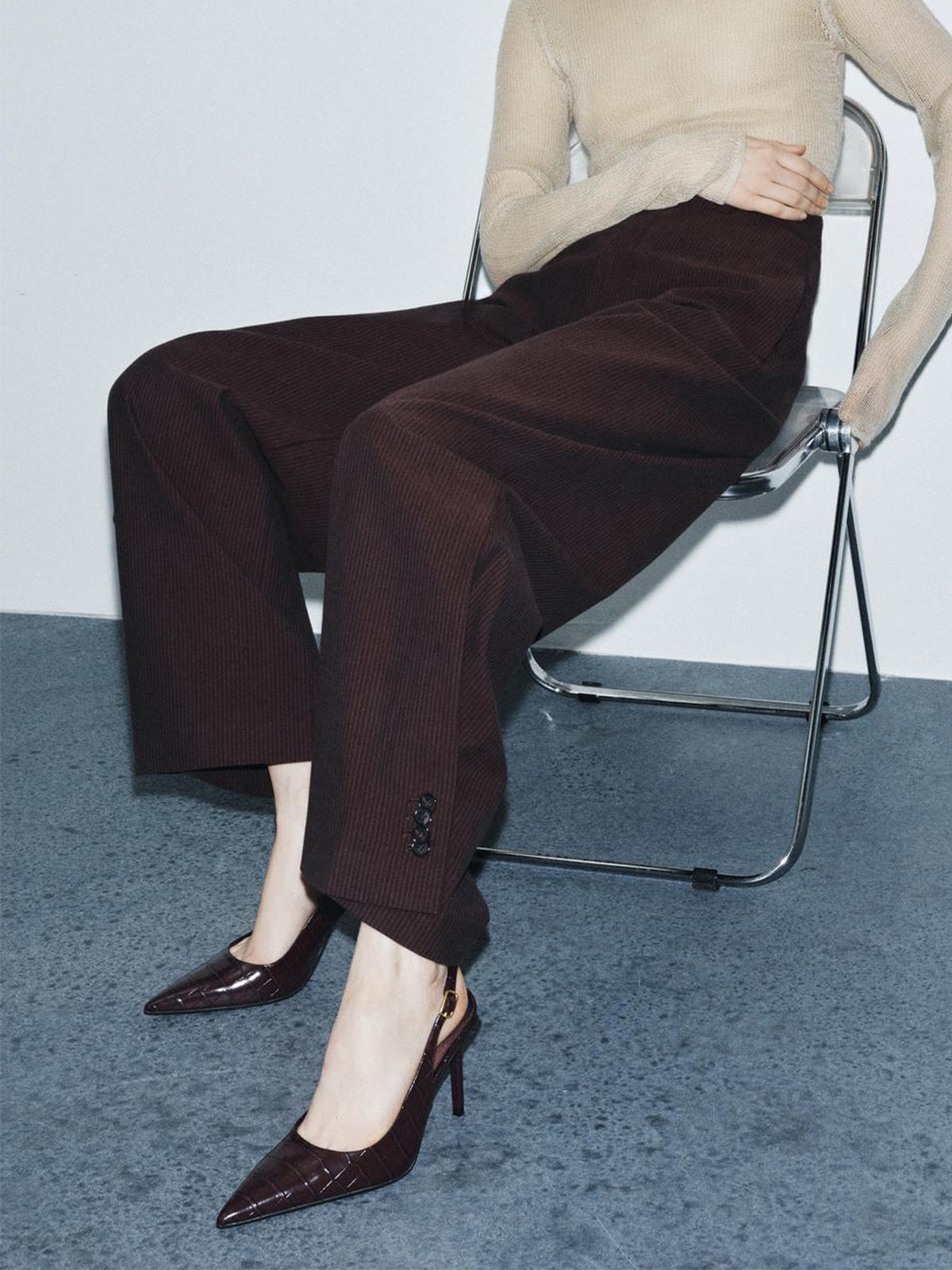 Elevate your style with these heels. Featuring a pointed toe and classic high heel, the textured stone pattern adds subtle drama while the slingback design ensures a secure and comfortable fit. Perfect for both formal occasions and stylish everyday wear.