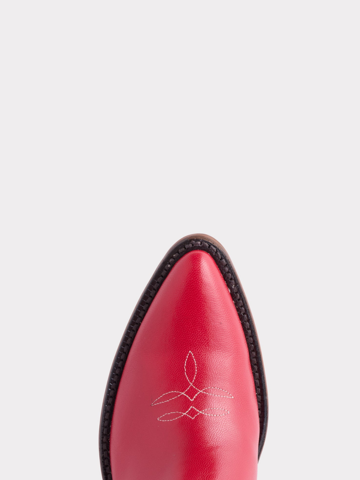 Cherry Red Pointed-Toe Embroidery Floral Inlay Mid Calf Cowgirl Boots