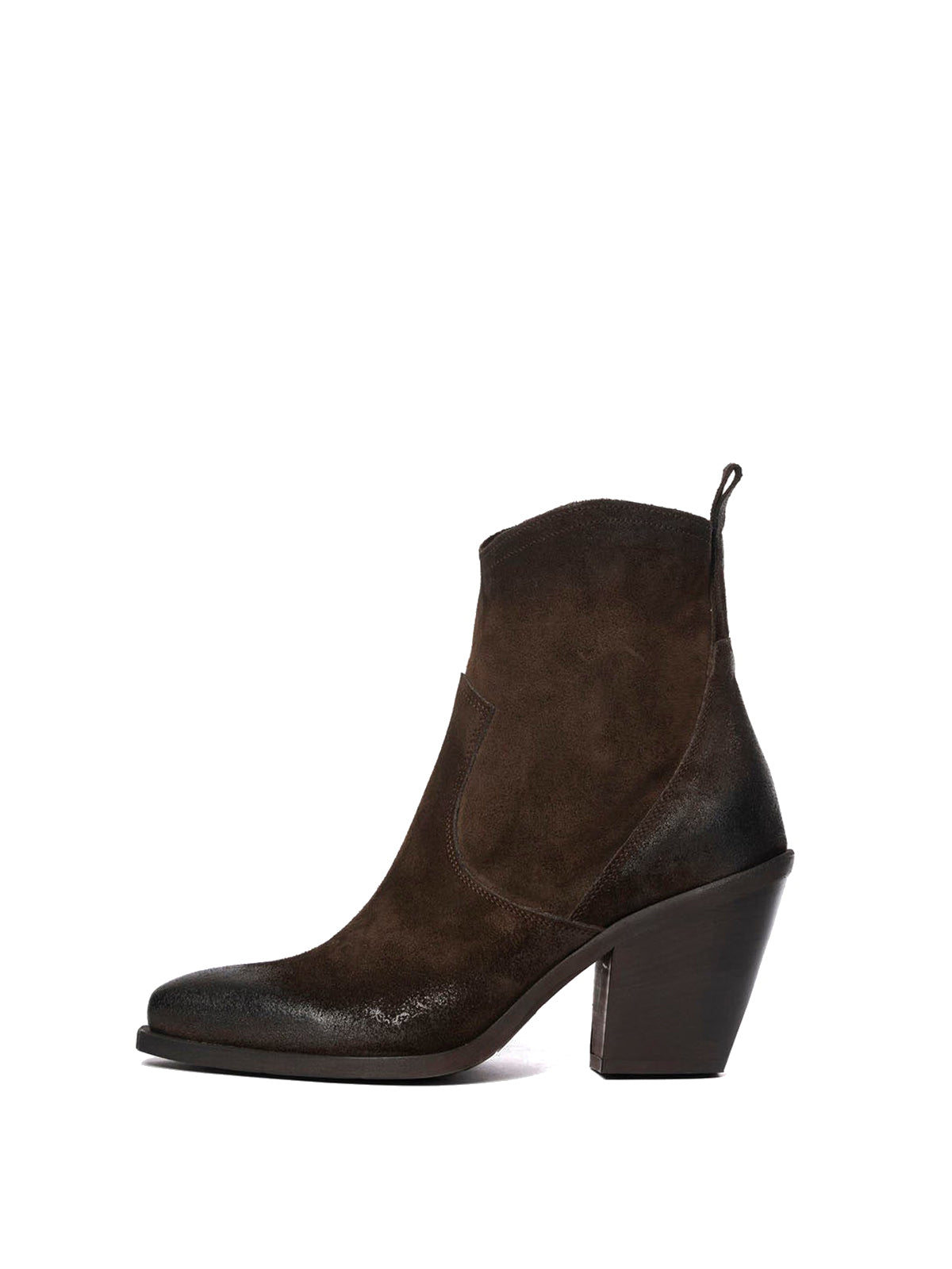Chocolate Faux Suede Snip-Toe Side Full-Zip Classic Ankle Cowgirl Boots