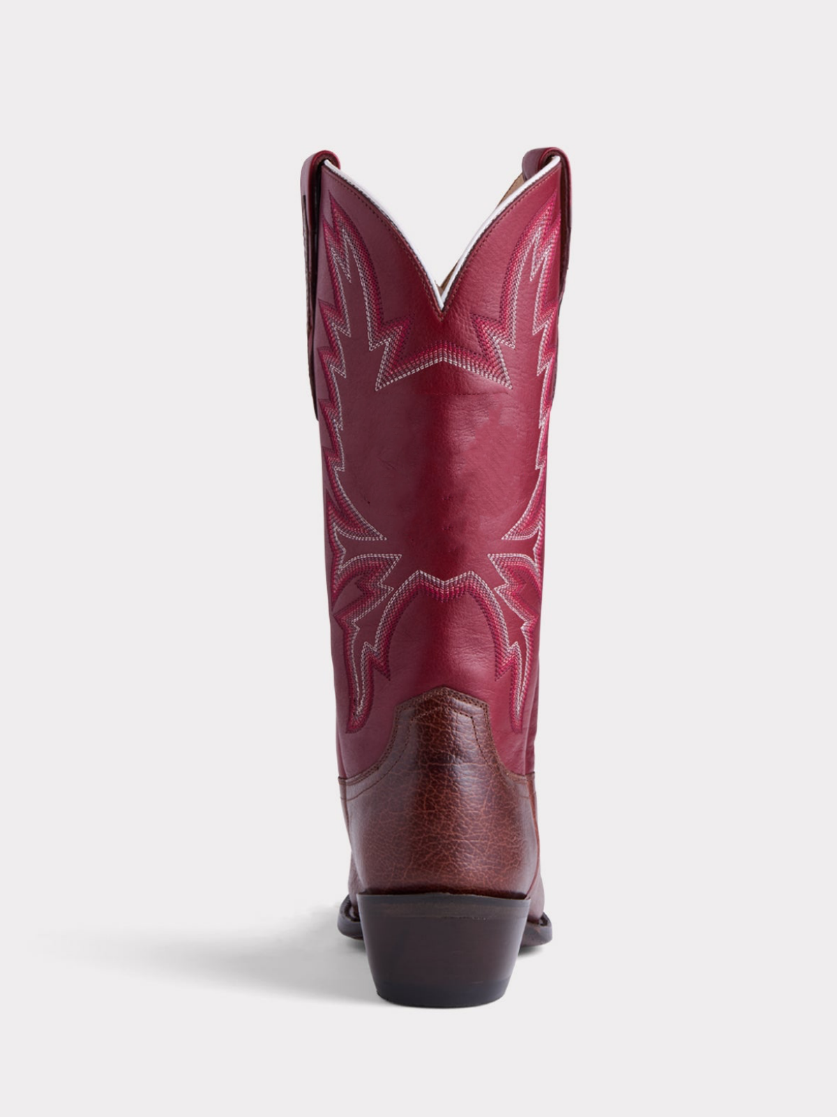 Contrast Chocolate And Red Snip-Toe Embroidery Mid Calf Cowgirl Boots