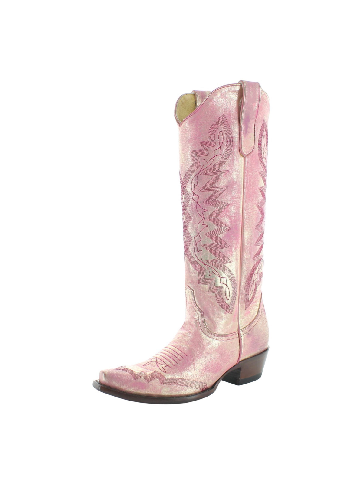 Metallic Pink And Gold Stitch Snip-Toe Cowgirl Boots Distressed Wide Calf Tall Boots