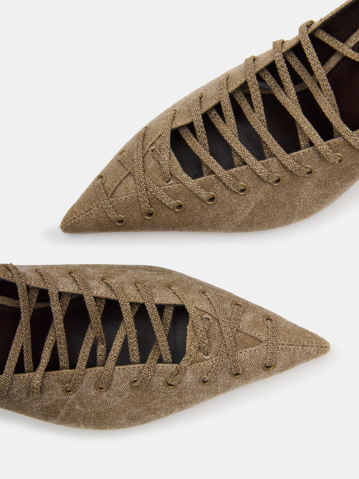 Olive Green Pointed-Toe Lace-Up And Strappy Slingback Pump High Heels