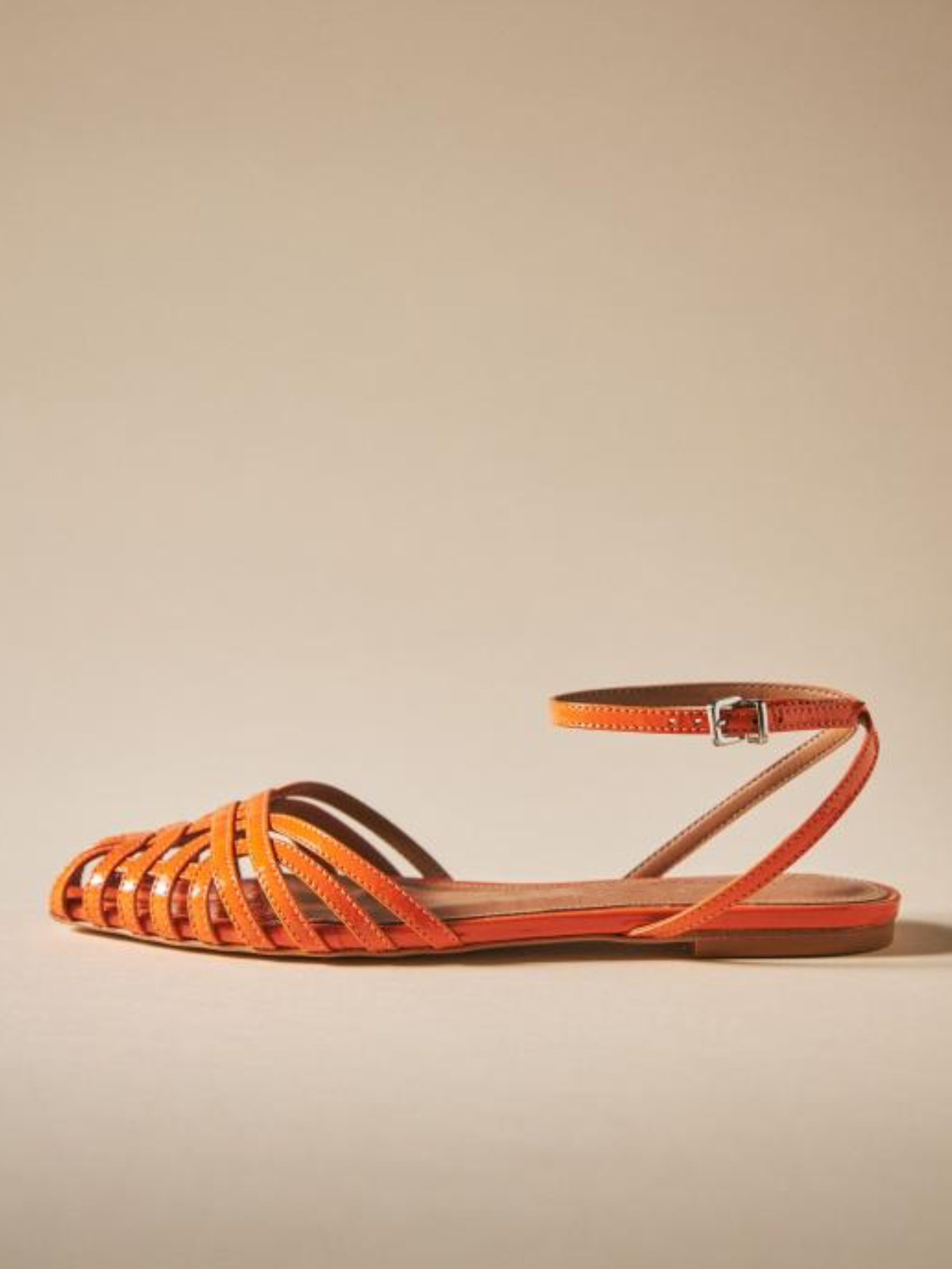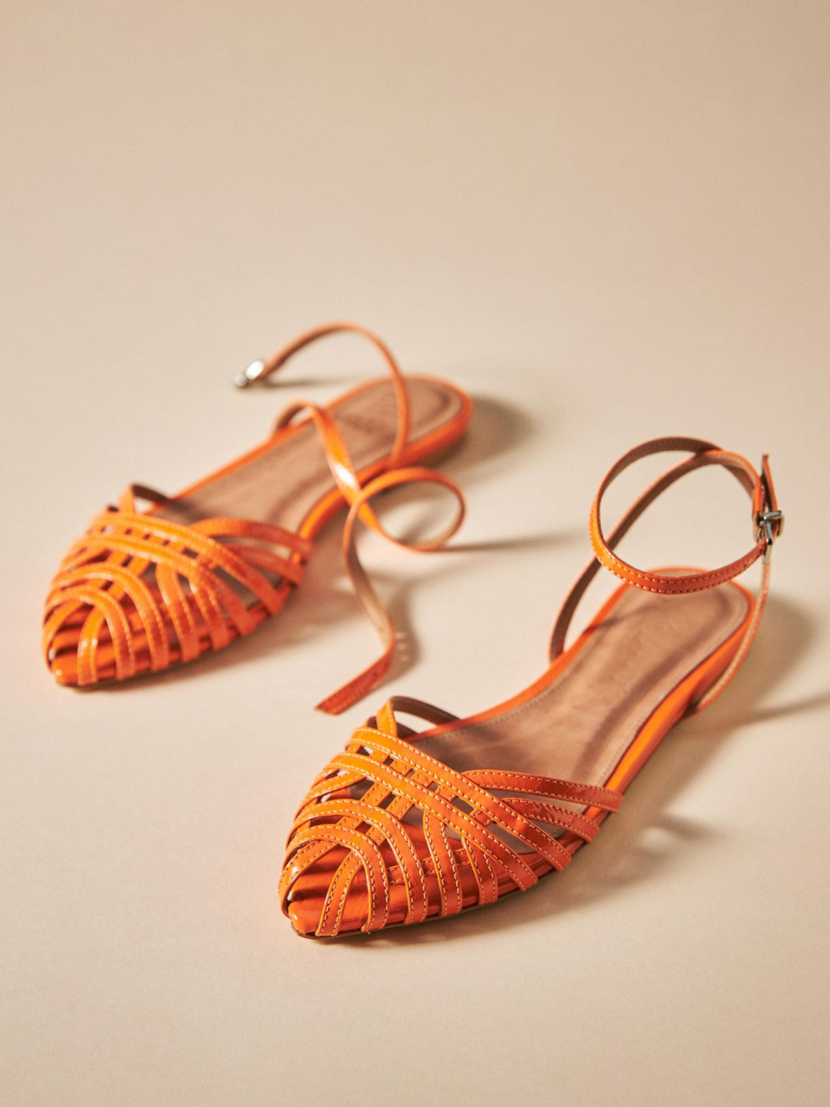 Orange Strappy Flats Pointy Closed Toe Sandals With Wrap Ankle Strap