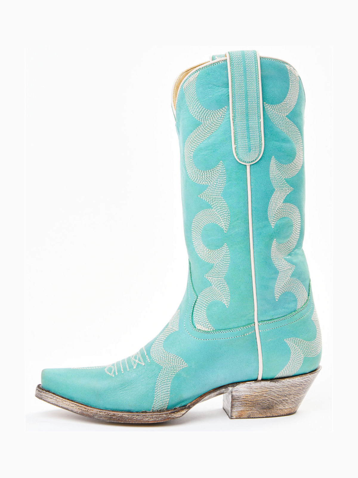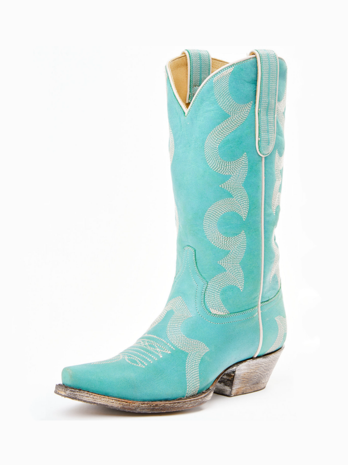 These cowgirl boots blend tranquility and elegance into every step. The powder blue upper is like a clear sky, while the embroidery vividly captures the grace and poetry of nature. Each step brings a sense of light freedom and endless possibilities. These boots are not just a fashionable choice, but a true expression of elegance.