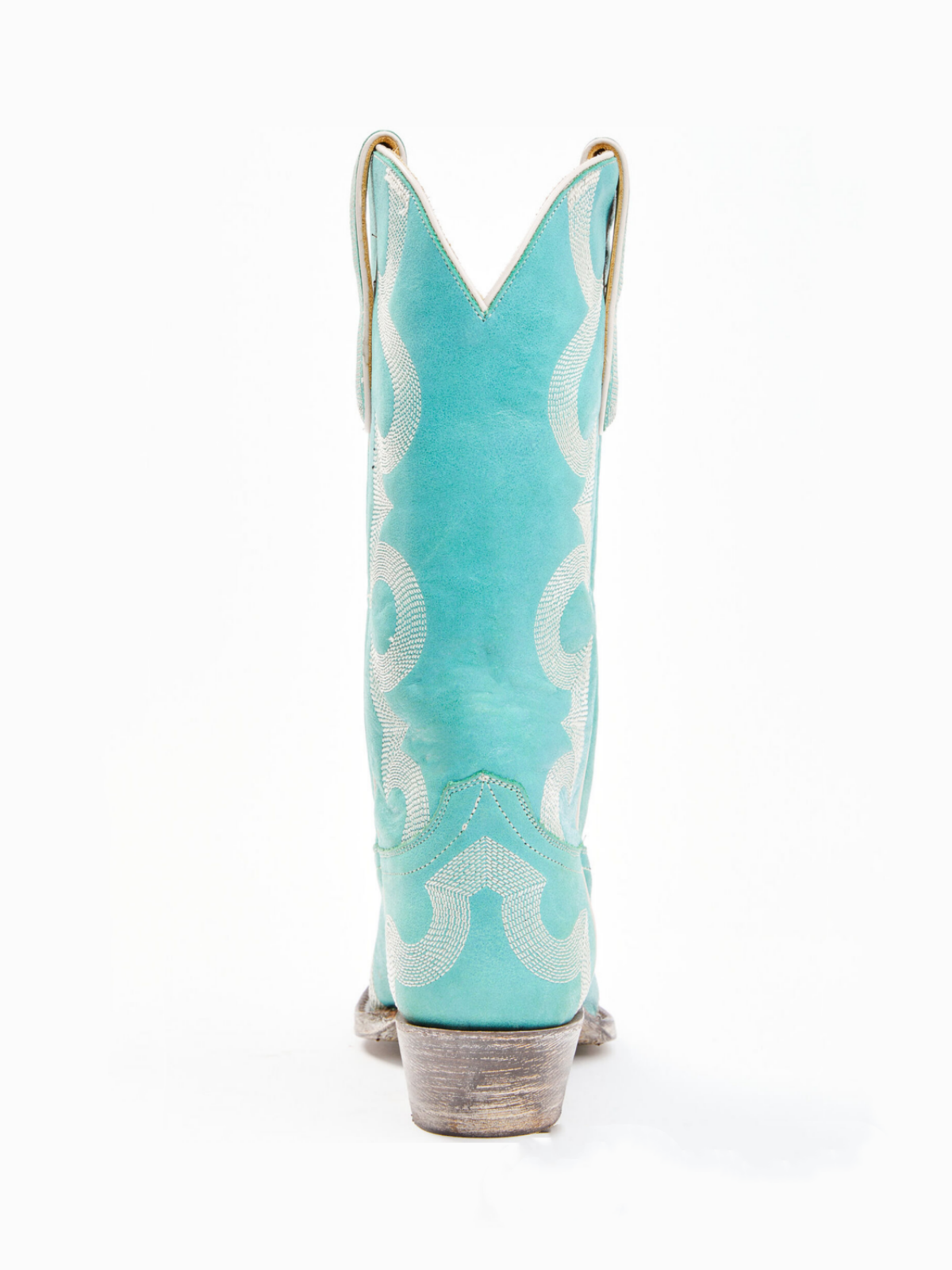 Powder Blue Embroidery Snip-Toe Tall Wide Mid Calf Cowgirl Boots