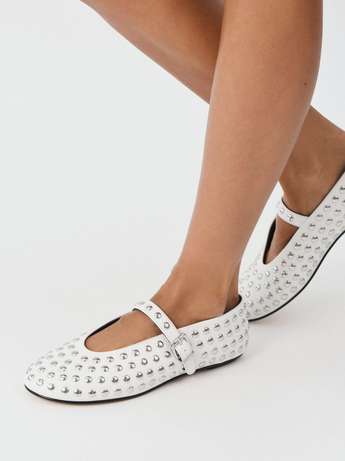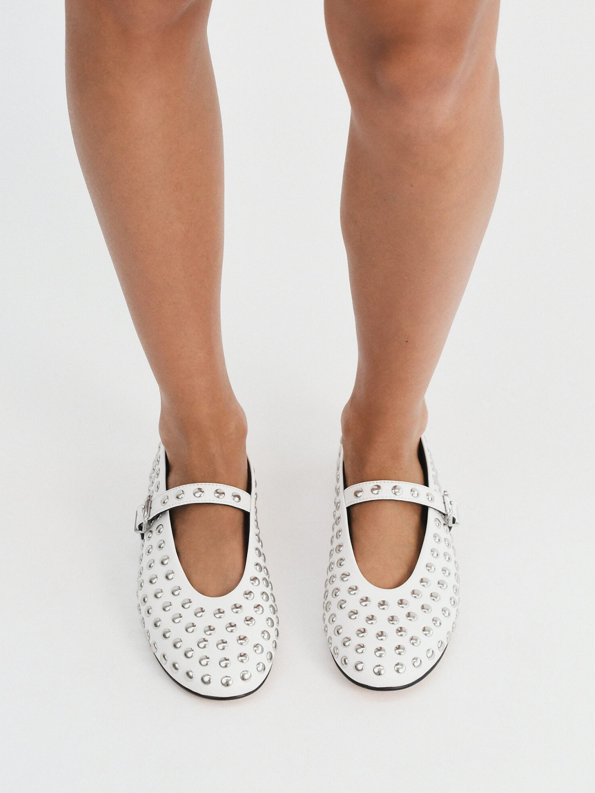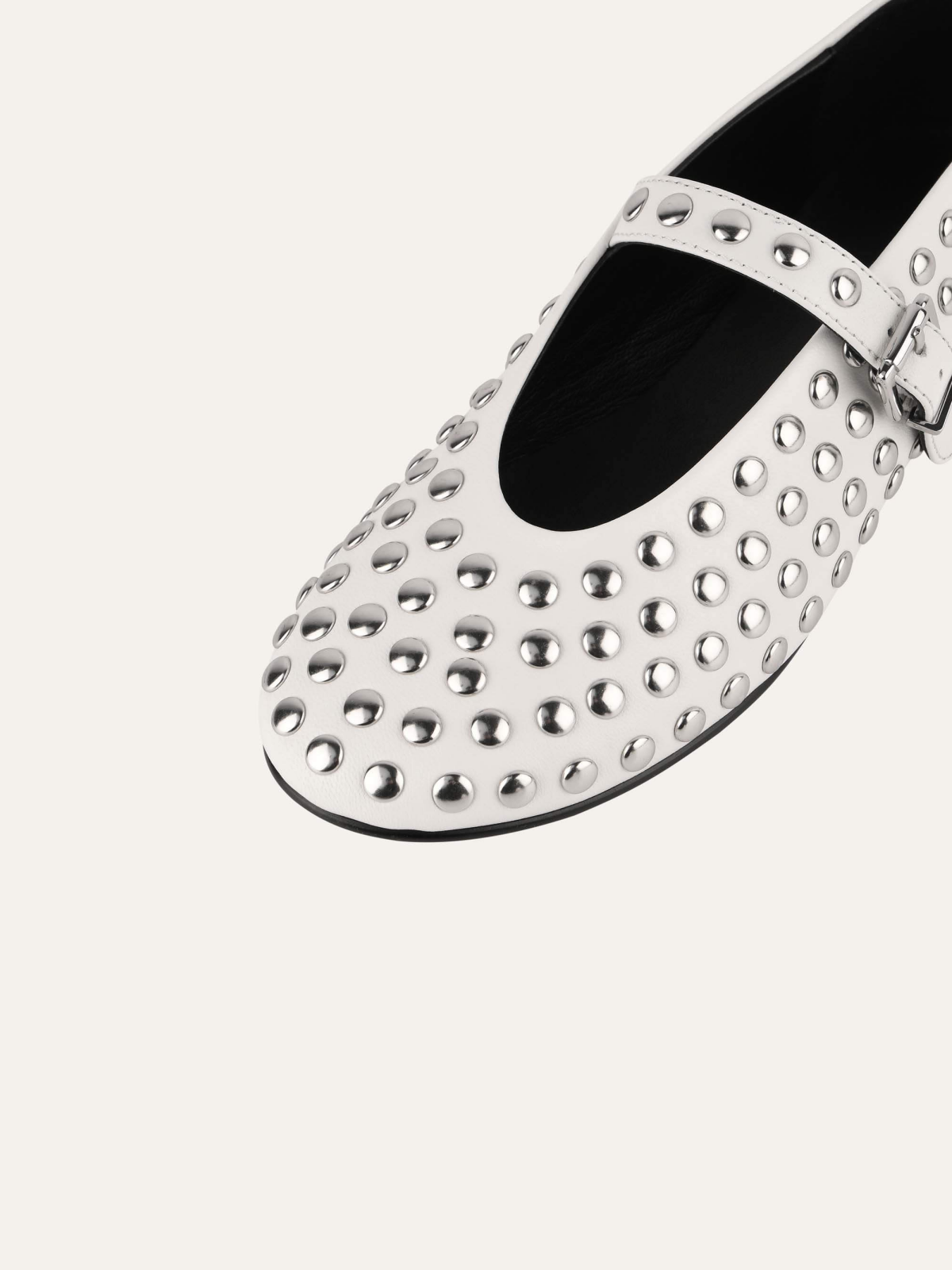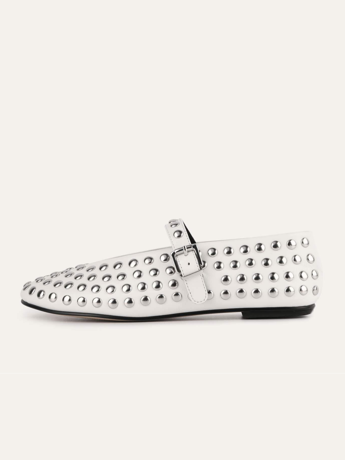 Women‘s Stud Casual Ballet Flats Mary Janes In White